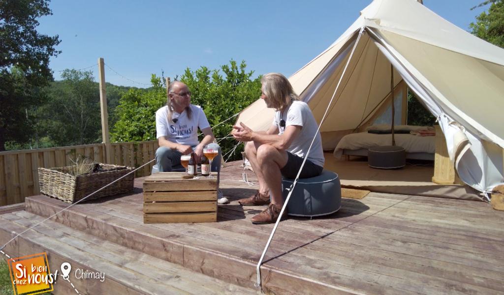 Aujourd'hui, nous sommes arrêtés à Chimay. Notre fil rouge, c'est le Naturia Eco Camp à Robechies, un camping écologique et équitable géré par une coopérative. un véritable projet de vie nature dans lequel on peut louer une tente safari ou un habitat insolite. Et nous découvrirons aussi la Ferme de l'Eau Blanche à Virelles. Et enfin, nous dresserons le portrait du carillonneur de Chimay et de son futur successeur, Olivier Terwagne.