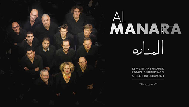 Une rencontre musicale et humaine : Al Manara signifie en arabe ''le phare''. C’est aussi le nom de la place centrale de Ramallah, ville palestinienne innovante au rayonnement culturel intense. C’est encore un projet musical né de la rencontre humaine de deux hommes, véritables passeurs de musique. Ramzi Aburedwan joue du bouzouk et de l’alto. Eloi Baudimont est lui aussi compositeur, fondateur de différentes fanfares du Tournaisis et autres projets participatifs, ouvert à toutes les expériences et les cultures, des banquets de la Sainte-Cécile aux rives du Niger au Mali, en passant par le Festival d’Avignon…Ces deux-là se sont rencontrés à l’ombre de la Cathédrale de Tournai et se sont trouvés des affinités musicales et de cœur. Ensemble, aux côtés de douze musiciens belges et palestiniens, ils ont construit le projet Al Manara, comme le témoin de cette improbable rencontre, entre cuivres occidentaux et instruments traditionnels arabes, entre mélopées poignantes palestiniennes et polyphonie européenne, entre douceur du chant et puissance des saxophones. Des textes de Mahmoud Darwich, figure de proue de la poésie palestinienne, agissent comme liant de ces deux univers a priori en tous points écartés et transportent l’auditeur encore un pas plus loin dans cette recherche de métissage, de partage d’émotions, d’humanité.