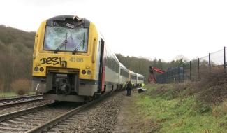 Un train percute un camion-grue à Ham-sur-Heure-Nalinnes