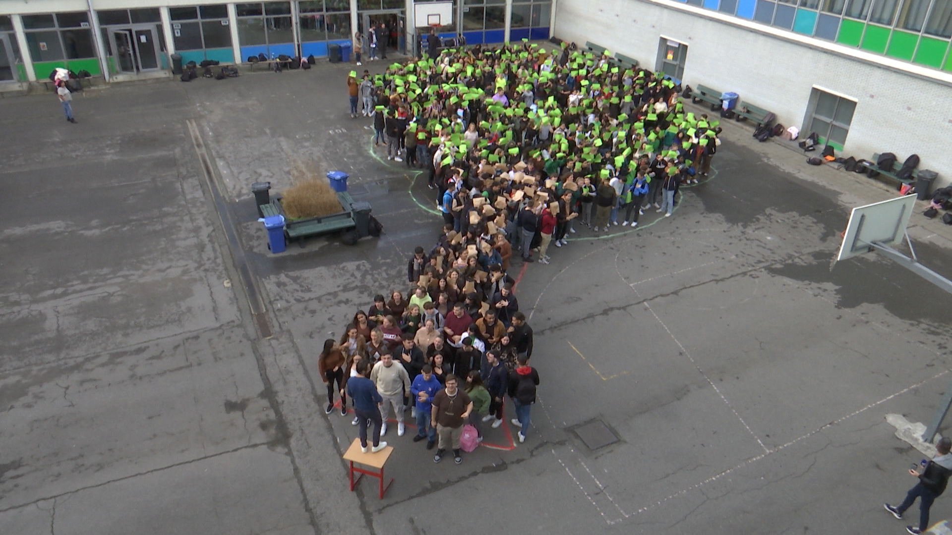 Près de 600 élèves étaient rassemblés dans la cour de l’athénée René Magritte ce vendredi. En fond, la chanson de Yannick Noah « Aux Arbres Citoyens » pour marquer cette journée de sensibilisation du 21 octobre, "Stand Up For Climate". Chacun prends a pris sa place pour réaliser un arbre humain, une petite pierre à l’édifice de l’école châtelettaine contre le réchauffement climatique.