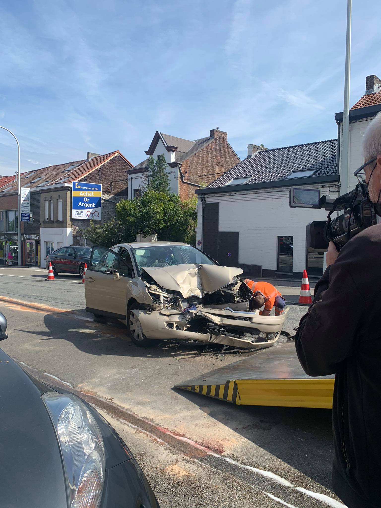 Grave accident à Couillet: un ouvrier de l’intercommunale Tibi a été percuté par une voiture.
