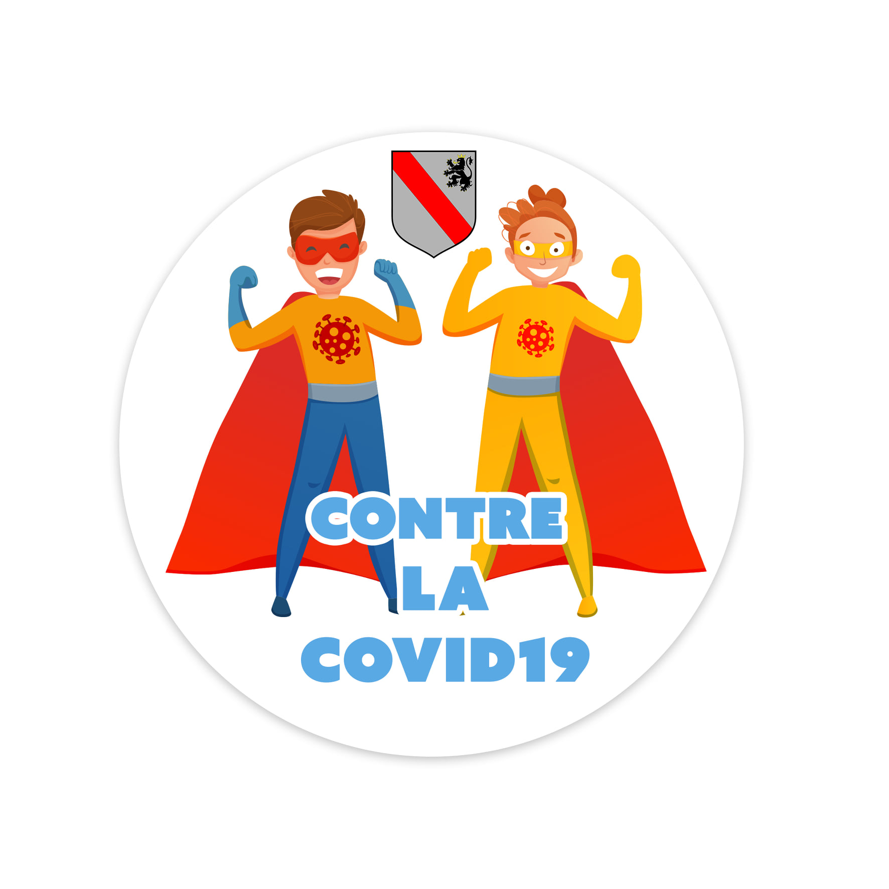 • Un badge représentant des super-héros qui dévoile leurs super-pouvoirs à destination des élèves de l’enseignement primaire afin de montrer leurs engagements dans la lutte contre le coronavirus et de leur donner envie d’appliquer les mesures sanitaires en devenant eux-aussi des super-héros et en apprenant à maîtriser les super-pouvoirs que sont les gestes barrières