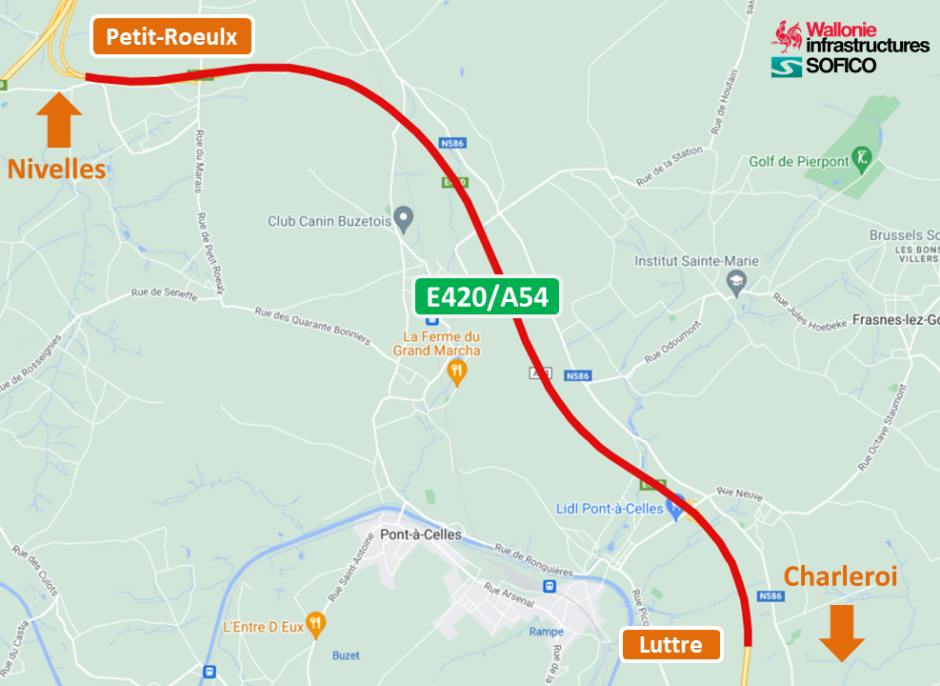Depuis le 14 mars dernier, un chantier est en cours sur l’E420/A54, de Gosselies à Petit-Roeulx, en direction de Nivelles