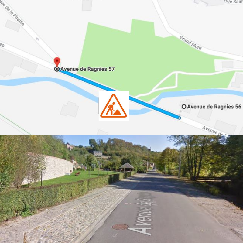 Les travaux se dérouleront dans l'Avenue de Ragnies sur sa portion comprise entre le numéro 56 et le numéro 57.