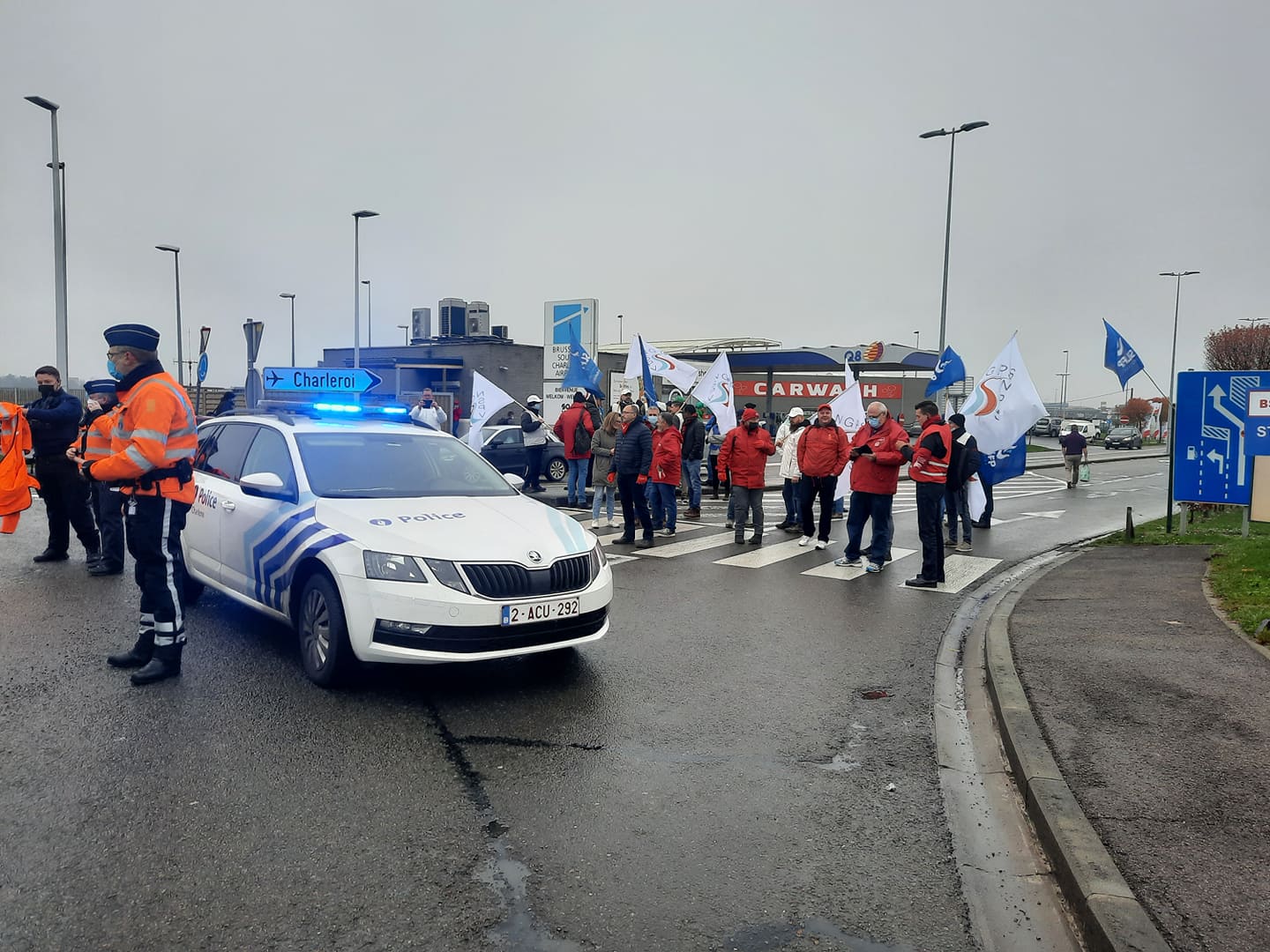 Ce matin, Les syndicats policiers en front commun étaient présents comme promis à l'aéroport de Charleroi pour en bloquer l'accès.
